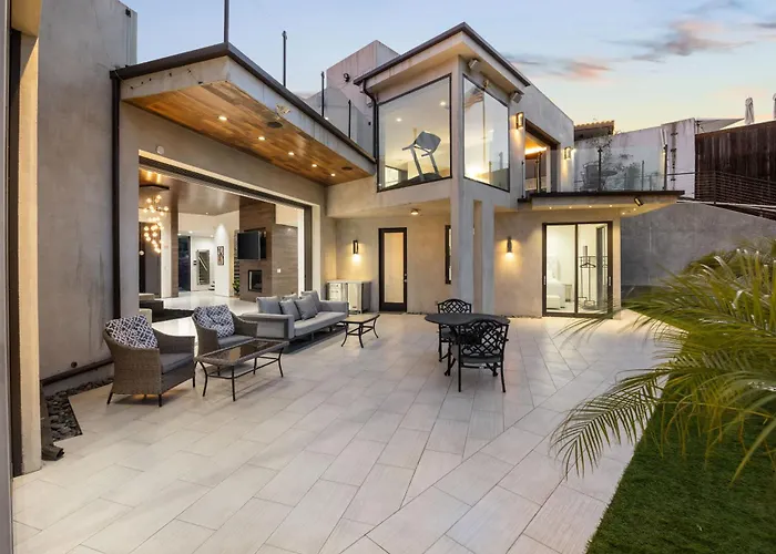 Deze 5-slaapkamer New Listing The Skyline Villa By Colby & Conrad Los Angeles is gesitueerd binnen 25 minuten lopen van de Pacoima Dam en biedt toegang tot bezienswaardigheden in de omgeving. De 5-badkamer villa heeft parkeerplaatsen en een zonneterras met uitzicht op de berg.